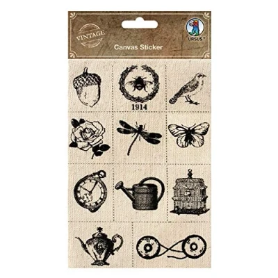 URSUS Vintage Canvas Wall Sticker 1 Sheet 12 x 18 cm for Card Making Gift, Multi Coloured