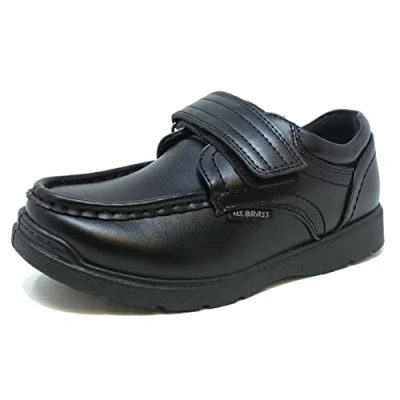 Us Brass Boys Hard Wearing Back To School Touch Fastening Black Formal Shoes Size 2 6 UK 1
