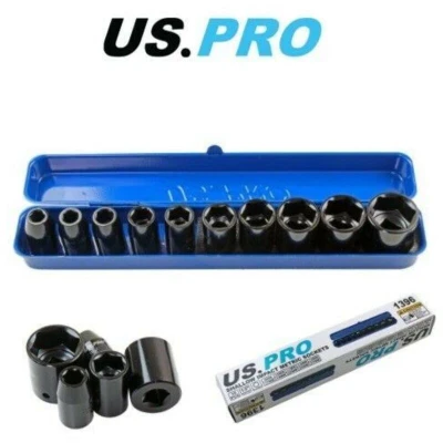 US PRO 10PC 1/2" DR Shallow Impact Metric Socket Set 9 27mm 1396