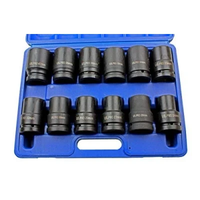 US Pro 12 Piece 1 inch Drive Single Hex Deep Impact Socket Set B2096