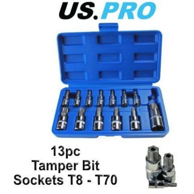 US PRO 13pc Torx Star Set Tamper Bit Sockets T8 T70 1497