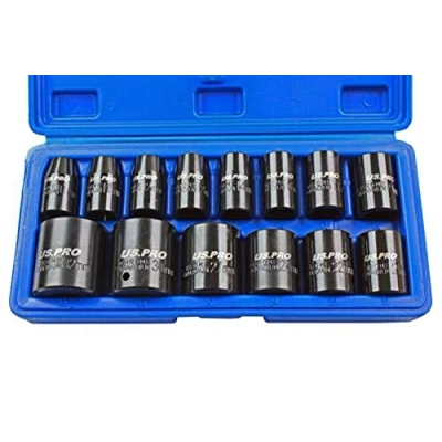 US PRO 14 Piece 1/2in Dr Shallow Impact Sockets Metric