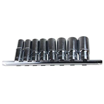 US Pro Bergen 8pc 1/2 Dr 6 Point Deep Sockets 13 24mm on Rail