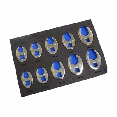 US PRO INDUSTRIAL 10PC 3/8" DR. Metric Crowfoot Wrench Set in EVA Tray 10 19mm 7520