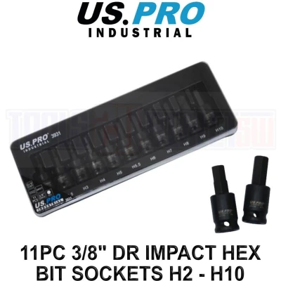 US PRO INDUSTRIAL 11PC 3/8 DR Impact Hex Bits Sockets H2 to H10 S2 Steel 3931