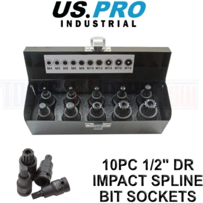 US PRO INDUSTRIAL Tools 10pc 1/2" dr Impact Spline Bit Sockets Set 3435