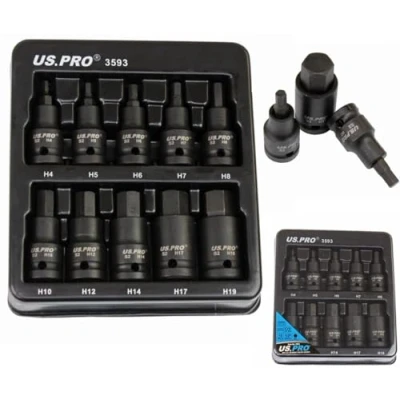 Sizes: H4, H5, H6, H7, H8, H10, H12, H14, H17 & H19 1/2" drive so will fit any 1/2" drive ratchets / bars / extensions etc. European Style Made from chromium-vanadium steel for strength and durability and helps resist abrasion, oxidation, and corrosion Black Phosphate finish, Weight: 2.24651044978 Pounds, Manufacturer: US PRO