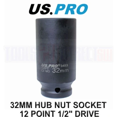 US PRO Tools 32mm 1/2" dr 12 Point Deep Hub Nut Socket, Gearbox etc 3483