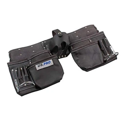 US PRO Tools Heavy Duty Leather Double Tool Belt Oil Tanned 11 Pockets 2302