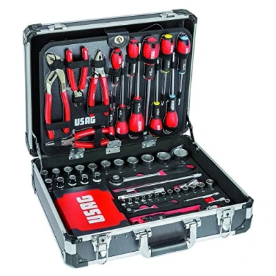 USAG: since 1926 is the Italian manufacturer of reference for quality innovation and reliability Case with Aluminium section shell and metal reinforcements; double metal closing hinge with lock (key included) Handle with plastic protection; three inside panels equipped with elastics to hold tools Blocking system of the folding panel; base with cut-out bi-colour foam Tool-outlines on the panels and in the foam, in addition to the markings on the size of wrenches and sockets, enable quick identification of the required or missing tools 460x370x155mm Weight 11 Kg, Weight: 28.66009406 Pounds, Manufacturer: USAG