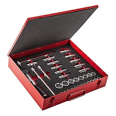USAG: since 1926 is the Italian manufacturer of reference for quality innovation and reliability Contents: 10 long bihexagonal sockets 235 1/2"LN 10-12-13-14-17-19-22-24-27-30 mm; 20 hexagonal sockets 235 1/2"EN 8-9-10-11-12-13-14-15-16-17-18-19-20-21-22-23-24-27-30-32 mm; 2 extensions 236 1/2" 125-250 mm; 1 reversible ratchet with sealed mechanism (certified IP51) 237 A 1/2"; 1 T-handle with sliding square drive 240 1/2"; 1 universal joint 241 1/2" Closing clip and carrying handle The inside tray is studied to be stored in USAG roller cabinet drawers 425x395x83 mm; weight 9 Kg, Weight: 20.4588979136 Pounds, Manufacturer: USAG
