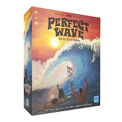 Grab your suit and surf board - it's time to make a name for yourself! Catch the perfect wave and put together moves on your way to victory in this light strategy, signature card game. HOW TO PLAY: Collect Wave cards to construct a sequence, earning points for runs and sets of numbers. Play Trick cards to show off and score bonuses. Paddle out, plan the best combo of moves, and create the ultimate surfing memory! Achieve personal best scores in this richly themed light strategy card game, perfect for fans of surfing and gamers of all levels. Includes: 1 Pier Board, 72 Wave cards, 72 Maneuver Cards, 30 Goal Cards, 4 Player Aid Cards, 4 Surfer Tokens, 12 Surf Wax Tokens, 2 Surfboard Tokens, 1 First Player Standee, Rules Game design by Jason Mowery and Chase Williams | 2-4 Players | Ages 8+ | 30-60 Minute Play Time, Manufacturer: USAopoly
