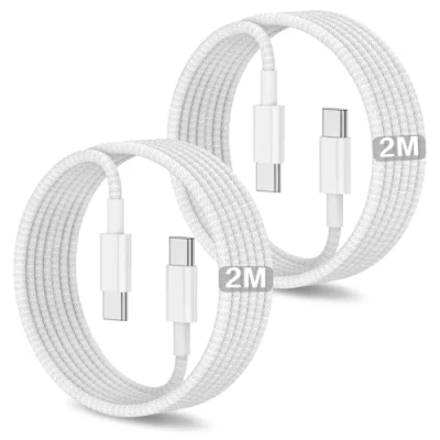 Universal Compatibility: USB C charger cable is compatible with iPhone 17/ 17 Air/ 17 Pro/ 17 Pro Max, iPhone 16e /16 / 16 Plus / 16 Pro / 16 Pro Max / 15 / 15 Plus / 15 Pro / 15 Pro Max, Galaxy S25/S24/S23 FE/S23 Ultra/S23+ Plus/S23/S22 Ultra/S22 Plus S22+/S22/S21 FE/S21/S21+/S21 Ultra/S20 FE/S20/S20 Ultra/S20 Plus/Z Fold 5 4 3/Z Flip 5 4 3/A53/A54/A33/A34, iPad 10,iPad Air 4th/5th, iPad Pro 2022/2021/2020/ 2018/iPad Mini 6th, MacBook 12"/MacBook Air 13"/MacBook Pro 13"/14"/15"/16", Google Pixel 8 Pro/8/7 Pro/7/7A/6A/6 Pro/6/5. 60W Fast Charging iPhone 15 16 17 Charger Cable: USBC to USBC cable support the PD 60W power (20V/3A) and can charge iPhone 15/1617 series from 0% to 80% in 35 minutes. The USB C to USB C cable also supports data transfer speeds of up to 40 ~ 60MB/S (480Mbps), which is perfectly suited for daily charging and transfer speed needs. Superior Durability: Nylon Braided fast charging cable Type C protect the charging port of your valuable device from damage, metal end never broken; premium copper wire core provide you greater charging stability and higher efficiency, protect against overheating, overcharging, short circuiting; coated with premium Nylon Braided, tested with over 55,000+ times bend to provide 4 times longer lifespan than other iPhone 16 charger cable, adding surprisingly flexibility. Multi Protection for Type C to Type C cable: Multiple built in safeguards with these USB C fast charger cable. The smart chips cable match the current required by the mobile device automatically, charges your iPhone/iPad device fast, safely, and steadily. Sync and charge at the same time at the fastest speeds on your windows PC or Mac. 2M USB C cable will automatically stop charging when fully charged for a safety charging and long lifespan. What You Get: Package includes USBC to USBC cable 2M. If you have any questions about USB C charging cable, please feel free to contact us, our customer service team will give you a satisfactory reply within 24 hours! Important Note Before Purchase: This is a USB-C to USB-C cable, which means it has the same USB-C plug on both ends, only work with USB-C chargers. This USB C cable does not work with USB-A chargers. Charging speeds also depends on your device and charger.