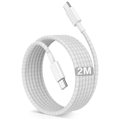 Universal Compatibility: USB C charger cable is compatible with iPhone 17/ 17 Air/ 17 Pro/ 17 Pro Max, iPhone 16e /16 / 16 Plus / 16 Pro / 16 Pro Max / 15 / 15 Plus / 15 Pro / 15 Pro Max, Galaxy S25/S24/S23 FE/S23 Ultra/S23+ Plus/S23/S22 Ultra/S22 Plus S22+/S22/S21 FE/S21/S21+/S21 Ultra/S20 FE/S20/S20 Ultra/S20 Plus/Z Fold 5 4 3/Z Flip 5 4 3/A53/A54/A33/A34, iPad 10,iPad Air 4th/5th, iPad Pro 2022/2021/2020/ 2018/iPad Mini 6th, MacBook 12"/MacBook Air 13"/MacBook Pro 13"/14"/15"/16", Google Pixel 8 Pro/8/7 Pro/7/7A/6A/6 Pro/6/5. 60W Fast Charging iPhone 15 16 17 Charger Cable: USBC to USBC cable support the PD 60W power (20V/3A) and can charge iPhone 15/1617 series from 0% to 80% in 35 minutes. The USB C to USB C cable also supports data transfer speeds of up to 40 ~ 60MB/S (480Mbps), which is perfectly suited for daily charging and transfer speed needs. Superior Durability: Nylon Braided fast charging cable Type C protect the charging port of your valuable device from damage, metal end never broken; premium copper wire core provide you greater charging stability and higher efficiency, protect against overheating, overcharging, short circuiting; coated with premium Nylon Braided, tested with over 55,000+ times bend to provide 4 times longer lifespan than other iPhone 16 charger cable, adding surprisingly flexibility. Multi Protection for Type C to Type C cable: Multiple built in safeguards with these USB C fast charger cable. The smart chips cable match the current required by the mobile device automatically, charges your iPhone/iPad device fast, safely, and steadily. Sync and charge at the same time at the fastest speeds on your windows PC or Mac. 2M USB C cable will automatically stop charging when fully charged for a safety charging and long lifespan. What You Get: Package includes USBC to USBC cable 2M. If you have any questions about USB C charging cable, please feel free to contact us, our customer service team will give you a satisfactory reply within 24 hours! Important Note Before Purchase: This is a USB-C to USB-C cable, which means it has the same USB-C plug on both ends, only work with USB-C chargers. This USB C cable does not work with USB-A chargers. Charging speeds also depends on your device and charger.