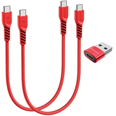 [DUAL 30CM CABLES + ADAPTER SET] Includes 2 × 30 cm USB-C to USB-C Cables and 1 × USB-C to USB-A Adapter – perfect for power banks, cars and travel. Short length keeps your setup tidy and tangle-free with maximum charging convenience. [60W Fast Charging] TECHGEAR Type C to Type C Cable provides fast charging up to 60W (20V/3A) to all USB-C devices that support PD/QC 4.0. It supports PD, QC and FCP fast charging technologies. (Note: This is USB C to USB C cable not USB C to USB A cable, Charging speeds also depends on your device and charger!) [Data Transfer & Sync] This USB C PD cable supports data transmission up to 480Mbps (40-60MB/s) based on USB 2.0. *Note: This Cable does not support Video Out. [Strong & Durable Build] Premium braided nylon with reinforced strain relief, laser-welded metal tips and internal fibre core. Built to withstand over 45,000 bends – perfect for travel, home or office use. [Perfect for Your iPhone 17/16/15] Our premium USB-C to USB-C cable ensures reliable charging for your iPhone 17 series. Stay powered up and connected without compromise. *Tested to charge your iPhone 15 up to 50% in 30 minutes. [Wide Compatibility] This USB C to USB C charging cable (not USB A to USB C) is compatible with all USB-C devices, such as iPhone 17//Pro/Pro Max/Air, Samsung Galaxy S26 S25 S24 S23 S22 S21 S20 Ultra/Plus/FE/Edge, Note 20/A15/A16/A17/A35/A36/A55/A56/A05s, iPad Pro 2024/2022/2021, IPad Air 11"/13"/4th/5th Gen, iPad Mini 7th/6th, iPad A16 11th/10th, MacBooks, Redmi Note 15/14/1312/11/10, Pixel 10/9/8/7/7a/6/6a, Honor Magic 8/76/5/4/90/70/X5 and more, PS5/XBox One Controller, Switch 2 OLED/Lite [TECHGEAR QUALITY GUARANTEED] UK brand since 2012 – trusted for durable, safety-tested charging accessories. Includes 2 × 30 cm Cables + 1 Adapter. Backed by UK support and 12-month warranty.