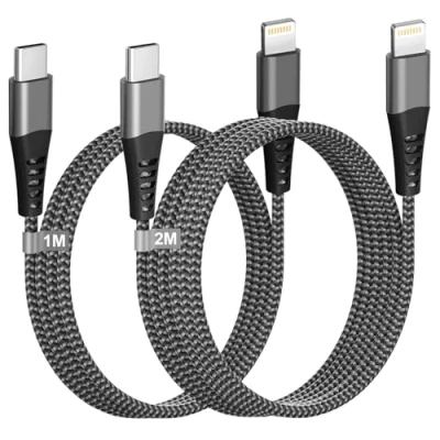 【3A PD Fast Charging&Data Transfer iPhone Fast Charger Cable】The 2M long USB C iPhone charger cable support fast charging when you using USB-C PD power delivery Chargers, the USB C apple iphone charger cable can charge your iPhone 14 from 0 to 50% in 30 minutes, which is much faster than the standard Apple iPhone charging cable(5V/1V). Besides, the iPhone 13 charger cable also support date transmission up to 480Mbps, works as great as the original Apple iPhone charger cable lead wire. 【Widely Compatibility iPhone Charger Cable USB C】The USB C to lightning cables support PD power delivery fast charging for iPhone 14 Pro/14 Pro Max/14/14 Plus/13/13 Pro/13 Pro Max/13 Mini/12/12 Mini/12 Pro/12 Pro Max/SE 2020/11/11 Pro/11 Pro Max/XR/XS Max/ XS/X/ 8/8 Plus,iPad and other later models when using your USB-C PD charger (Note:You need a 20W or above USB-C Power Adapter to match it.). And the USB C iphone charger cables also support the standard charge (5V/2.4A max) for iPhone 7 Plus/7/6 Plus/6/6S Plus/6S/5S/5C. 【Apple Mfi-Certified USB C Lightning Cable】Our fast charging iPhone 14 13 charger cable have completed MFi certification requirements,Which can be found on the official site of Mfi-Certified.The iphone fast charging cable use the newest lightning end design for fast charging, which can safely and quickly charge your iPhone/iPad/iPod device.Enjoy fast data transfer, syncing and charging. 【Flexible and Durable iPhone Lightning Cables】The 1M iPhone cable USB C is made of top-rated material and coated with premium TPE, which last 4X longer than other iphone charger cable cord and proven to withstand over 80,000 bends in strict laboratory tests.The USB C iPhone cable fast charging durability is three times as long as that of ordinary iPhone charging cables. 【Perfect 1M+2M iPhone Charger Cable USB C】With the 1M fast charging USB C lightning cable, you can lie in the couch or sofa to fast charge your iPhone devices without moving. Providing a much more comfortable for reading e-books, playing games, watching videos.You can use the 2M iPhone 13 charger cable in the car space.In order to achieve lightning-like charging speeds, please connect the cable to an appropriate USB-C Power Delivery power supply device. 【What your get】You will receive 1M+2M different length Nylon iPhone lightning cable USB C in different places, if you have any questions about the Apple iPhone charger cable, we will help you solve the issues.
