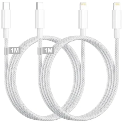 2-in-1 USB C to Lightning Cable: This USBC to Lightning cable supports PD fast charging, and when paired with a USB-C PD charger, it can charge an iPhone 14 up to 50% in just 30 minutes. In addition, this iPhone Lightning cable also supports high-speed data transfer with speeds of up to 480Mbps, allowing you to easily sync photos, music, and files within seconds. The efficient 2-in-1 iPhone USB C cable provides you with both fast charging and high-speed transmission. Durable iPhone Fast Charger Cable: This 1-meter-long iPhone charger cable USB C can withstand over 19,999 bends, effectively resisting the wear and tear of daily use. Wrapped in a nylon braided exterior, Lightning cable USB C remains sturdy and unbroken even with frequent plugging, unplugging, or bending, and its tangle-free design makes it more convenient for you. MFi Certified USB C Lightning Cable: This USBC to iPhone cable uses an original chip to ensure full compatibility with iOS devices, preventing any compatibility warning pop-ups during charging or data transfer. MFi-certified USB C to iPhone cable has undergone strict quality testing to ensure your iPhone can charge and transfer data quickly and safely. Type C to Lightning Cable Compatibility: This USB C iPhone charger cable supports PD fast charging and is compatible with iPhone 14/14 Plus/14 Pro/14 Pro Max, iPhone 13/13 mini/13 Pro/13 Pro Max, iPhone 12/12 mini/12 Pro/12 Pro Max, iPhone 11/11 Pro/11 Pro Max, iPhone X/XS/XS Max/XR, iPhone SE/SE (2nd gen)/SE (3rd gen), iPhone 8/8 Plus, iPad (4th–9th gen), iPad mini (1st–5th gen), iPad Air (1st–3rd gen), iPad Pro (1st–2nd gen). What You Get: 2 x 1M USB-C to Lightning Cable (nylon braided material). We offer a 24-month after-sales warranty for your Apple fast charger cable order. If any quality issues arise with iPhone cable fast charging during the trial period, please feel free to contact us, and our customer service team will resolve the issue within 24 hours.