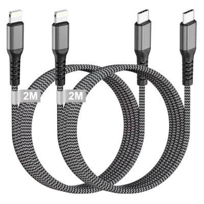 Fast Charge & Sync Lightning Cable: The usb c to lightning cable support 2.4 A fast charging when using USB-C Power Delivery Chargers charging lead(including 18W, 20W, 29W, 30W, 61W, or 87W USB C Power Adapters) which charges iPhone 14 from 0% to 50% in 30 minutes, almost 4 times faster than regular chargers. The iPhone charging cable also supports data transfer speeds of up to 480Mbps to easily transfer music, photos and files between iPhone and laptop in seconds. Mfi Certified iPhone Fast Charger Cable: Through strict Mfi inspection, iphone lightning cable is fully compatible with IOS system. These iphone cable fast charging use the newest lightning end design for fast charging, which can safely and quickly charge your iPhone/iPad devices and no longer triggers warning messages. Super Durability and Flexibility Lightning Cable for iPhone: The iPhone charger cable is made of nylon braided material, which has excellent abrasion resistance and anti-tangling properties. Sturdy and durable with excellent performance, the lightning cable can withstand 10,000+ bends in strict laboratory tests, making type c to lightning cable have a longer service life. iPhone Cable Universally Compatible: The iphone charging cable can be widely compatible with IOS devices, charging for iPhone 14 Pro Max/14 Pro/14/13/13 Pro Max/13 Pro/13 mini/12/12Pro Max/12 Pro/12 mini/11/11 Pro /11 Pro Max/XR/XS/XS Max/X/10/8/8 Plus/7/7 Plus/6s Plus/6s/6 Plus/6/5s/5/SE, iPad Pro/Air/mini, iPod Touch (6th/5th generation), and the latest iOS system. 2M iPhone Charging Cable: With 2Pack 2 metre iPhone charger cable, you can relax in bed, or charge in any position that's convenient for you. The lightning cable offer the extra freedom to charge your devices in your bedroom, office and even in the backseat of your car.