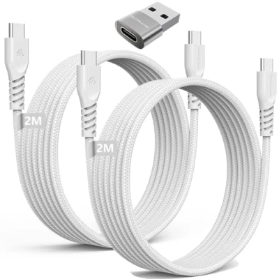 [DUAL 2M CABLES + ADAPTER SET] Includes 2 × 2 Metre USB-C to USB-C Cables and 1 × USB-C to USB-A Adapter – ideal for home, office and travel use. Extra-long length lets you charge comfortably from wall sockets or distant plugs. [60W Fast Charging] TECHGEAR Type C to Type C Cable provides fast charging up to 60W (20V/3A) to all USB-C devices that support PD/QC 4.0. It supports PD, QC and FCP fast charging technologies. (Note: This is USB C to USB C cable not USB C to USB A cable, Charging speeds also depends on your device and charger!) [Data Transfer & Sync] This USB C PD cable supports data transmission up to 480Mbps (40-60MB/s) based on USB 2.0. *Note: This Cable does not support Video Out. [Strong & Durable Build] Premium braided nylon with reinforced strain relief, laser-welded metal tips and internal fibre core. Built to withstand over 45,000 bends – perfect for travel, home or office use. [Perfect for Your iPhone 17/16/15] Our premium USB-C to USB-C cable ensures reliable charging for your iPhone 17 series. Stay powered up and connected without compromise. *Tested to charge your iPhone 15 up to 50% in 30 minutes. [Wide Compatibility] This USB C to USB C charging cable (not USB A to USB C) is compatible with all USB-C devices, such as iPhone 17//Pro/Pro Max/Air, Samsung Galaxy S26 S25 S24 S23 S22 S21 S20 Ultra/Plus/FE/Edge, Note 20/A15/A16/A17/A35/A36/A55/A56/A05s, iPad Pro 2024/2022/2021, IPad Air 11"/13"/4th/5th Gen, iPad Mini 7th/6th, iPad A16 11th/10th, MacBooks, Redmi Note 15/14/1312/11/10, Pixel 10/9/8/7/7a/6/6a, Honor Magic 8/76/5/4/90/70/X5 and more, PS5/XBox One Controller, Switch 2 OLED/Lite [TECHGEAR QUALITY GUARANTEED] UK brand since 2012 – trusted for durable, safety-tested charging accessories. Includes 2 × 2 M Cables + 1 Adapter. Backed by UK support and 12-month warranty.