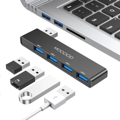 USB MOGOOD Hub for Laptop, 3.0 Splitter Ultra Slim Data Multi Port Expander Windows PC, Mac, Printer, Flash Drive, Mobile HDD