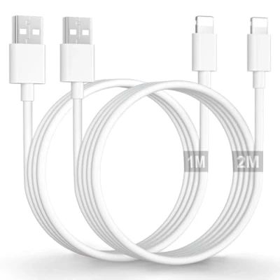 Fast Charging and Sync iPhone Cable 2M: The iphone charger lead uses high-quality copper core wires to improve the charging and data transfer speed of iPhone devices. This iphone charge cable supports 5V/2.4A current for fast charging and 480Mbps data transfer, This iphone wire can charge an iPhone 14 from 0% to 50% in 30 minutes. At the same time, the 2M iphone charging cable's compact aluminium connector helps protect your device. MFi Certified Safety Lightning Cable: This dual-length USB to Lightning cable set ( iphone cable 1M + iphone leads for charging 2M) is Apple MFi certified and features the latest smart chip. This iphone lead ensures full compatibility with your device and will not display warning messages during use. MFi-certified chips ensure that iphone 12 charger cable provide safe and effective current during charging, allowing you to charge safely and worry-free even at night. Super Durable iPhone Fast Charger Cable: This ipad charger cable allows you to say goodbye to lighting cables wear and iphone charging cables clutter. This iphone leads for charging uses a double-layer TPE/PVC shielding layer + laser welding stress point design, which can withstand 10,000 90-degree bending tests. Therefore, this usb iphone charger cable is three times more durable than ordinary iphone 11 charger cables. This usb lightning cable will be with you for years to come. Perfect Compatibility iPhone Lightning Cable: The fast charger cable ensures full compatibility with all Lightning devices. iphone charger lead 2m for iPhone 14/14 Pro/14 Pro Max/iPhone 13/13 Pro/13 Pro Max/iPhone 12/12 Pro/12 Pro Max/iPhone 11/11 Pro/11 Pro Max/iPhone XS/Max/XR/X/8 Plus/8/7 Plus/7/7s Plus/6/6s/6s/6 Plus/6/5c/5/iPad Pro/iPad Air/iPod, etc. Perfect Length USB A to Lightning Cable: You will receive iphone charger cable 1m*1 and usb to lightning cable 2m*1, Two different lengths of fast charging iphone cable give you more flexibility, with this fast charging cable, you can use your iPhone anytime, anywhere. This iphone 13 charger cable provides you with a spare cable at all times, making charging more convenient at home, while travelling, and at work.