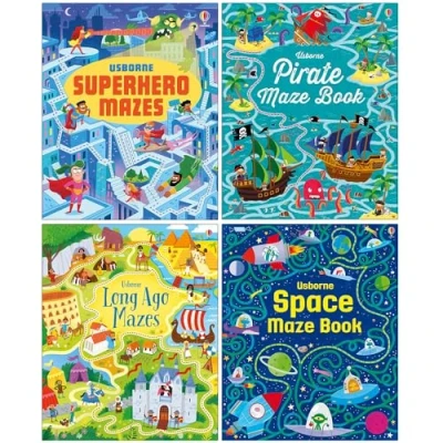 Usborne Maze Series 4 Books Collection Set(Superhero Mazes, Pirate Book, Long Ago Mazes & Space Book)