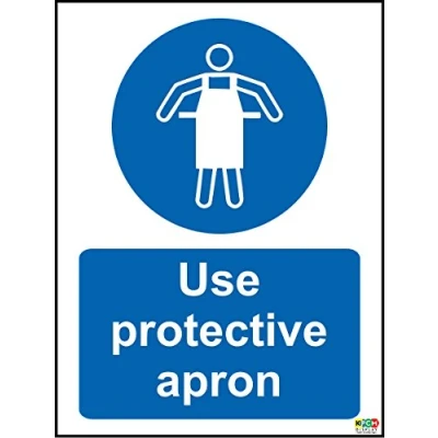 Use protective apron sign Self adhesive sticker 200mm x 150mm Remove backing film and apply to dry, smooth, oil free surface. Digitally printed and laminated for extra durabillity