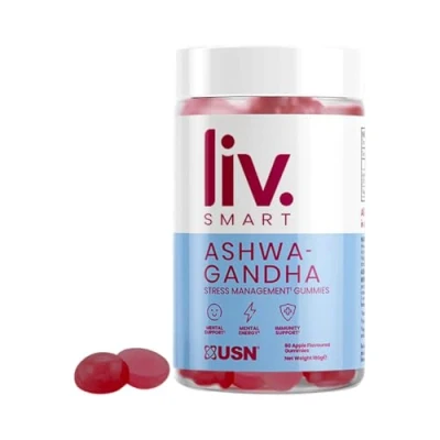 Usn Liv.Smart by Ashwagandha Gummies 60 Delicious Apple Flavoured Stress Management with Added Vitamin B6 for Mental Support, Energy and Immunity Support