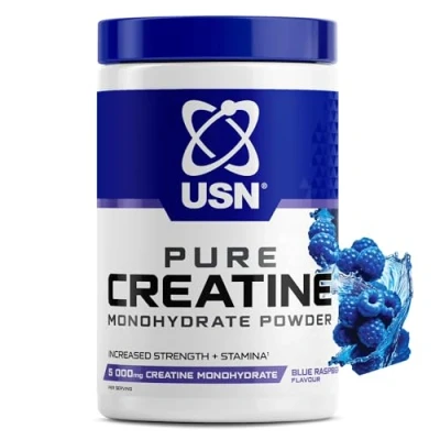 USN Pure Creatine Monohydrate Powder 360g Blue Raspberry 60 Servings 5g Micronised Flavoured for Strength, Endurance & Performance