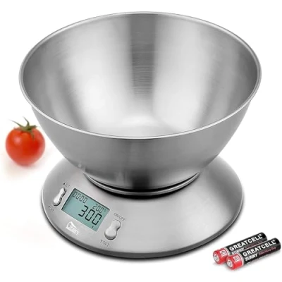 Uten Electronic Kitchen Scales, Digital Scale with Detachable Stainless Steel Bowl, LCD Display, Ambient Temperature Sensor, Tare Function, Food for Cooking Baking, 11lb/5kg