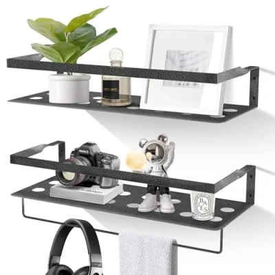 Uten Floating Shelves, Iron Wall Mounted Shelf with Towel Bar, Shelves Set of 2 for Bedroom, Bathroom, Living Room, Kitchen, Home Office, Laundry Garden