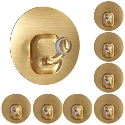 Uten Hooks for Hanging, Adhesive Heavy Duty, Sticky Hanging up to 5KG, Wall, Door, Coat, Hat in Bathroom Living Room Kitchen, Golden, 10 Pack