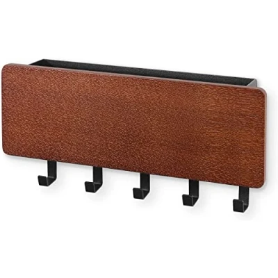 Uten Key Holder for Wall Decorative with 5 Hooks, Wooden Hanger, Multifunctional Self Adhesive or Perforated Installation, Hallway, Entryway, Bedroom, Living Room