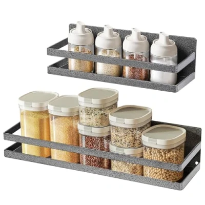 Uten Magnetic Spice Rack, 2 Pack Shelf Removable Fridge Without Drilling for Kitchen Organization and Storage Jars Seasoning Bottles, Black