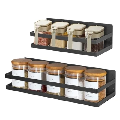 Uten Magnetic Spice Rack, 2 Pack Strong Shelf, Wall Mounted Rack Without Drilling, for Cabinet Refrigerator Space Saving Kitchen Organization, Black