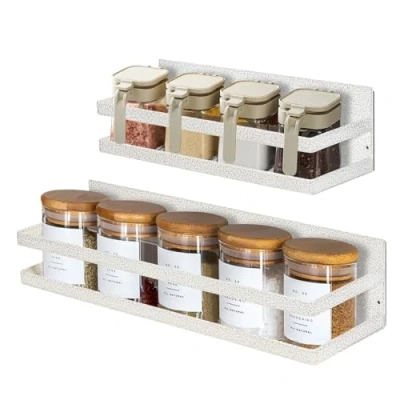 Uten Magnetic Spice Rack, 2 Pack Strong Shelf, Wall Mounted Rack Without Drilling, for Cabinet Refrigerator Space Saving Kitchen Organization, White Texture