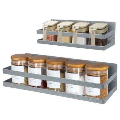 Uten Magnetic Spice Rack, 2 Pack Strong Shelf, Wall Mountedr Rack Without Drilling, for Cabinet Refrigerator Space Saving Kitchen Organization, Gray Texture