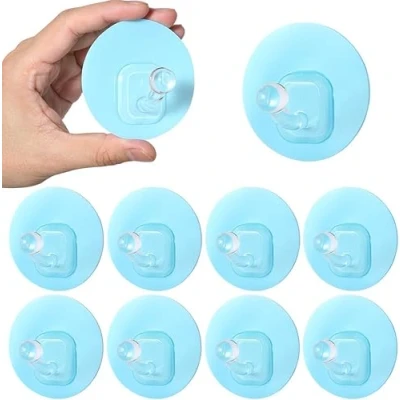 Uten Self Adhesive Towel Hooks Without Drilling Wall Bathrobe Transparent Set of 10 for Bathroom Kitchen (Max. 5 kg) Blue
