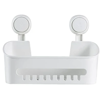 Uten Shower Shelf Suction Cup Wall No Drilling Self Adhesive Basket Reusable Plastic Kitchen for Bathroom, Kitchen, Living Room White