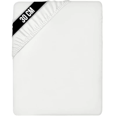 140 x 200 White Fitted Bed Sheet – Includes 1 fitted sheet (140 x 200) with 30 cm deep pockets designed to fit mattresses up to 12 inches thick. Brushed Polyester Microfiber - The brushed microfiber fabric makes the fitted sheet exceptionally soft, smooth and comfortable, keeping you warm in winter and cool in summer. All-Around Elastic - The fitted sheet easily conforms to the mattress with all-around elasticity, giving the bed a beautiful finish. Shrink And Fade Resistant - The microfiber material is processed to be shrink and fade resistant, which contributes to the durability of the fabric. Easy Care - Machine wash cold, gentle cycle, do not bleach, tumble dry on low heat and iron on low heat