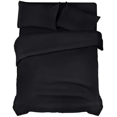 Utopia Bedding 4 Piece Double Set Pack of 8 Duvet Cover, Fitted Sheet with Pillow cases Soft Brushed Microfiber Polyester (Black)