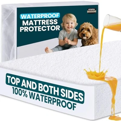 Fitted sheet style - Crafted in a fitted sheet style, this mattress protector fits twin size mattresses measuring 39 x 75 inches with deep pockets and a strong all-around elastic band, snugly wrapping mattresses up to 15 inches deep Dual side waterproof design - A smarter alternative to standard covers, this mattress protector features waterproof protection on the top and both long left and right sides. The seamless design on sides prevents any liquid seepage on to the mattress Soft & breathable terry surface – Crafted from 100% polyester, the terry fabric top is soft, absorbent, and noiseless. Ideal for kids light sleepers and for everyday comfort Effective Spill Defense This waterproof mattress protector features a TPU layer on the top and long sides, shielding against spills, sweat, and bedwetting. Ideal for households with kids, pets, or the elderly Easy Care – Machine wash cold or warm on a gentle cycle, tumble dry on low heat. Do not iron, bleach, or use fabric softener to maintain its waterproof properties