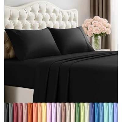 Utopia Bedding California King Bed Sheets Set 4 Piece Brushed Microfiber Shrinkage and Fade Resistant Easy Care (California King, Black)
