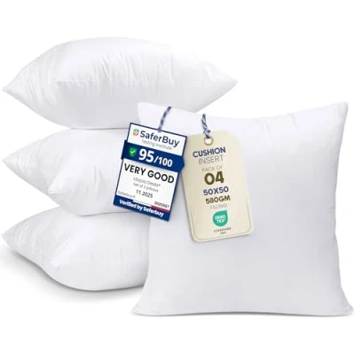 Utopia Bedding Cushion Inner Pads, 50 x cm (20 20 inches) Stuffer Inserts, Hollowfibre Pillows (Pack of 4 White)