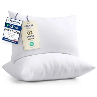 Cushion insert - Decorative cushions for your couches or bedroom; they are neither too big nor too small and they give off a homely vibe. Packaging - Our cushion inserts are compressed packed and vacuum sealed in polybag for shipping purpose, they might appear as one large pillow. Dimensions - Each cushion inner measures 30 x 50 cm (12 x 20 Inches). Fiber filling - Soft siliconized fiber filling will never make them look hollow. Care instructions - We recommend for spot clean or hand wash the fabric for easy care and maintenance. Do not Machine Wash.