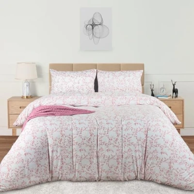Utopia Bedding Double Vines Coral Print Duvet Cover Set Soft Microfibre Polyester Quilt