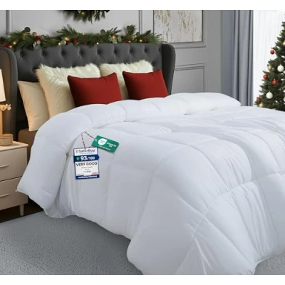 Convenient Size - Plush lightweight fiberfill, Double sized down alternative duvet measures 220 cm x 260 cm. Our All season Duvet 4.5 tog comforter is generously filled with fiber filling and is sewn to perfection for ultimate luxury and comfort. DURABLE AND LONG LASTING - 100 % polyester and solid pattern duvet is highly durable with a high tensile soft microfiber. STYLISH QUILTED DESIGN - Featuring an exquisite box-stitching design with piped edges, our ultra-soft, all-season microfiber comforter does not only look elegant but ensures that filing stays evenly distributed thereby keeping you cosy all night long. SUPERIOR SLEEPING EXPERIENCE - Luxuriously brushed microfiber cover filled with siliconized fiber filling provides exceptional softness and a gentle feel for a deeper and restorative sleep. WASHING CARE - Machine wash the duvet in a gentle cycle with cold water. Sun-dry or tumble dry on low when needed