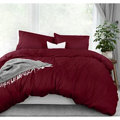 Utopia Bedding Duvet Cover Queen Size 1 with 2 Pillow Shams 3 Pieces Zipper Closure Soft Brushed Microfiber, 90 X Inches (Queen, Burgundy)