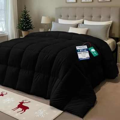 Utopia Bedding Duvet Double,10.5 Tog coverless with Corner Tabs, Box Stitched Quilt (King, Black)