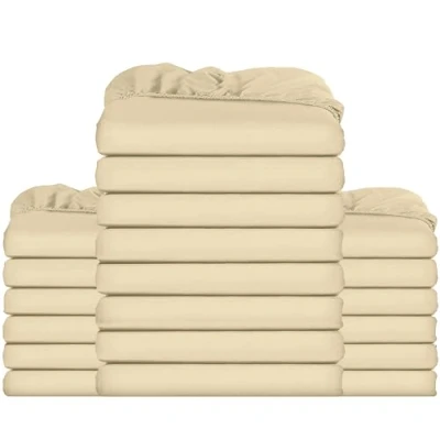Utopia Bedding Fitted Sheet Bulk Pack of 20 Pieces Single, Beige Deep Pocket Easy Care Soft Brushed Microfibre Fabric Shrinkage and Fade Resistant Bottom